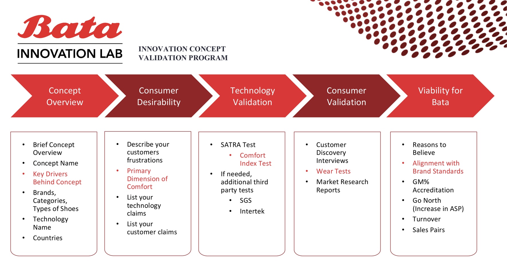 The Bata Innovation Lab (BIL) enabled Bata to aggressively expand its offering of consumer-validated and technically-validated global products for men and women. BIL also formulated and managed relationships with best-in-class strategic partners and manufacturers to deliver an integrated collection of product-focused innovations for Bata’s customers, globally.